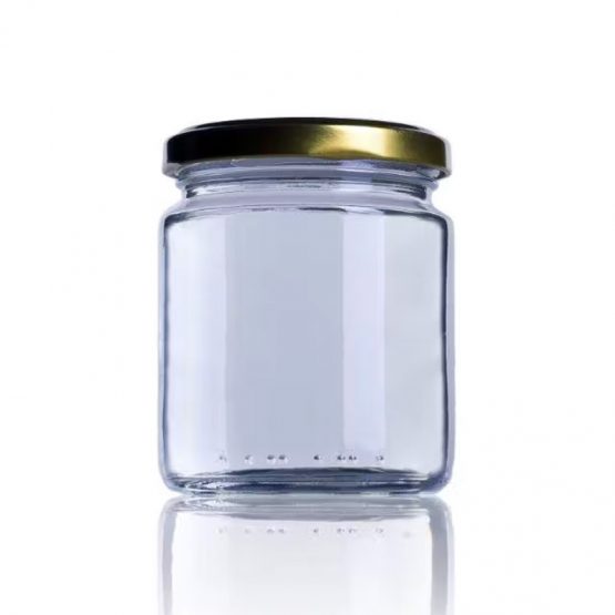 cx. com 12 unidades vasos para mel. altura 135mm / diâmetro 98,4mm capacidade 746ml,/ peso 320gr. /com tampa TO77 dourada incluída, próprio para embalar mel.